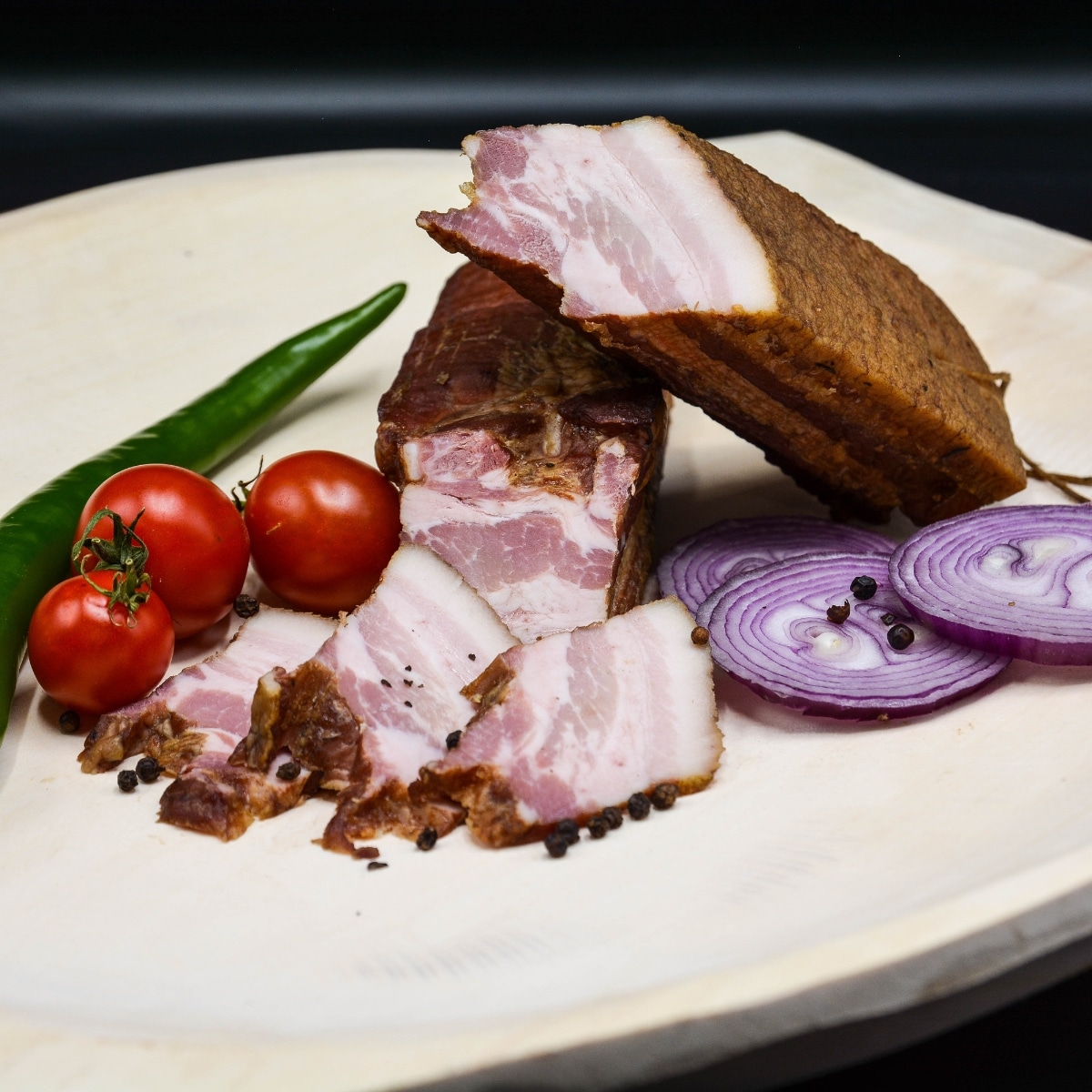 Produs din carne de porc afumat la lemn de fag, dichisit cu sare, fără coloranți sau arome sintetice!